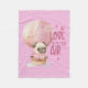 Liebe ist in der Luft Mops Valentine's Day Fleece Blanket - Fawn Mops in Heißluftballon mit Herzen