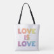 Dieses typografische Kunstwerk enthält Text in einem farbenfrohen Streifen-Design.