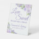 Dieses hübsche Tafelschild eignet sich perfekt für eine Leckerei an Ihrem Hochzeitsempfang. Es zeichnet sich durch ein schlichtes, aber dennoch elegantes Design aus, das mit lila Schriftzeichen und handgemalten lila- und lavendelfarbenen Rose, Blüten und Grünpflanzen in den Ecken besticht. Das Schild lautet: Liebe ist süß, bitte nehmen Sie eine Leckerei! Es gibt Platz für Ihre Namen und das Hochzeitstag unten.