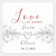 Elegante, moderne, boho, rot-schwarz-weiß Liebe ist süße Hochzeitsaufkleber für Favoriten mit Silberseilherz und vergoldeter Blumenspitze.