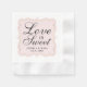 Elegante Hochzeitsservietteneigenschaft "Liebe ist süße" Skriptbenennung weich im Schwarzen mit einem errötenrosa und Gold einem farbigen dekorativen Rahmen. Personifizieren Sie das kundenspezifische Monogramm mit den Braut- und Bräutigamnamen und Hochzeitsdatum.