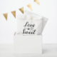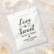 Elegante Hochzeitsgeschenke sind mit einem modernen schwarzen Kalligraphieskript "Liebe ist süß" gestaltet, zusammen mit einem stilvollen Minimalmonogramm der Braut- und Bräutigam-Vornamen, dem Hochzeitsdatum und der personalisierten Botschaft "Genießen Sie eine Leckerei".