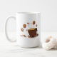 Die Liebe ist eine Kaffeetasse mit fliegenden Kaffeebohnen