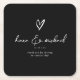 Elegante handgeschriebene Schrift- und Pinselstrich-Akzente werden verwendet, um die Teile dieser schönen, modernen Hochzeitssuite zu kreieren. Der hier in Weiß auf Schwarz gezeigte Hochzeitspapier-Untersetzer enthält eine Vorlage, um leicht eine persönliche Danksagung, Ihre Namen und Hochzeitstermin hinzuzufügen. Eine handgezeichnete Herzform verleiht zusätzlich einen lustigen Akzent. Suchen Sie ID940 um alle Produkte in diesem Hochzeitsfest Set zu sehen.
