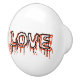 Liebe. Typografisches Design. Nur ein Single mit einem dekorativen tropfenden Schriftart. Das ist die Liebe, voller Hoffnungen, Tränen, Herzblutungen. Bekleidung und andere Produkte für jedermann. Keramikknauf.