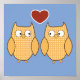 Ideal für ein Kinderzimmer oder Spielzimmer - Design von zwei Eulen stehend mit einem roten Liebe Herz zwischen ihnen auf einem himmelblauen Hintergrund. Niedliches und eigenartiges Cartoon-Design inspiriert durch Liebe und Freundschaft.
