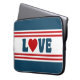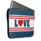 Liebe mit Herzform im nautischen Stil auf blau, rot und weiß gestreiften Hintergrund
