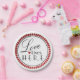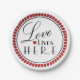 Dieses fließende Textdesign ist mit einem roten Seilrücken umrahmt und mit einem kleinen roten Herz überzogen. Es ist auch mit einem schwarzen oder weißen Rand erhältlich. In diesem Motiv sind passende Party-Servietten erhältlich.