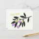 Valentinstag Gruß Postkarte mit niedlicher Flachbild-Illustration und Text "Liebe Mail". Schwarzer Zweig, Vanille-Blume und violette Herzen.
