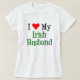 I Liebe mein irischer Ehemann, der ein rotes Herz und eine grüne Beschriftung kennzeichnet. Zeigen Sie Ihre Liebe für Ihren irischen Mann mit diesem niedlichen Entwurf. Vervollkommnen Sie, um während des Valentinstags zu tragen, ein Jahrestag oder, immer wenn Sie das romantische Gefühl sind.