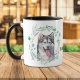 "LIEBE MY MALAMUTE" erklärt diese Tasse für den Alaskan Malamute Dog Liebhaber. Jede Seite der Tasse hat ein schönes Aquarellbild eines Malamute in einem blau-grünen Blattkranz. Zwischen den beiden Bildern befindet sich der Text, der von Ihnen leicht angepasst oder sogar entfernt werden kann.