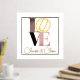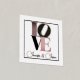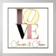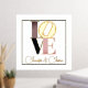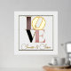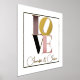 Romantischer Foliendruck, mit dem Wort LIEBE in Gold, Rosa, Schwarz und Taupe, Set auf weißem Hintergrund, mit einem dünnen goldenen Rahmen um den Außenrand. Personalisieren Sie den Gold-Text, ganz unten, um zu lesen, was immer Sie wollen.