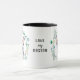 "LIEBE MY BOSTON" erklärt diese Tasse für den Boston Terrier Dog Liebhaber. Jede Seite der Tasse hat ein wunderschönes Aquarellbild eines Boston Terrier in einem blau-grünen Blattkranz. Zwischen den beiden Bildern befindet sich der Text, der von Ihnen leicht angepasst oder sogar entfernt werden kann.