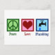 Niedliche Peace Liebe Plumbing Postkarten für einen Klempner mit einem coolen Friedenszeichen, Herz und einem tropfenden Wasserhahn.