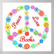 Teilen Sie den Spaß der Bücher mit diesem Friedenszeichen aus bunten Blume und den Worten - Peace Liebe Books.