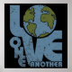 Liebe Eins in Grunge Text mit Erde als der Buchstabe O in Liebe. Tägliche Bejahung, sich gegenseitig zu lieben für eine bessere Welt.