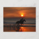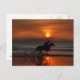 Postkarte eines einsamen Reiter und Pferdegaloppieren am Ufer des Strandes von Ballybunion im Landkreis Kerry Irland an einem Abend im Sommer.