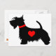 Liebliche Postkarte mit der Silhouette eines kleinen Hundes und eines großen roten Herzens.