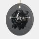 Ein romantisches und elegantes Grafikdesign mit einer schwarzen Rose, verbunden mit dem Wort "Liebe" in kursiver Schrift.