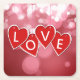 Romantische Illustration mit angehängten Herzen mit "LIEBE"-Buchstaben auf beißigem Hintergrund.