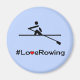 Dies ist ein lustiger Magnet für einen scharfen Ruder, der ein Piktogramm eines Single Ruders und den Hashtag-Slogan #LoveRowing darstellt. Der Hintergrund ist hellblau, und das "V" der Liebe wurde in ein rotes Herz verwandelt. Wählen Sie Platz oder Runde, je nach Vorliebe.