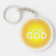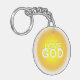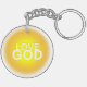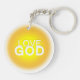 Liebe Gott Liebe Gott heller sonniger Text einfache klare Sprichwort nur Liebe Gott. Designen Sie Farben in Weiß, Gelb, Orange, Gold. Liebe Gott Sonniger goldgelber runder Schlüsselanhänger, Bild auf beiden Seiten. #god #Liebe #jesus #jesuschrist #trust #christlich #christ peace.