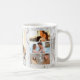 Stilvolle Kaffee-Tasse, die Sie mit 5 Ihrer Lieblings-Fotos personalisieren können. Die Vorlage ist für Sie bereit, um Ihre Fotos hinzuzufügen, die von verlassen nach rechts arbeiten. Ihre Fotos sind Set gegen einen modernen, grauen und weißen Wassermarmor mit einem eleganten geometrischen Design in Grau und Korallen. Die Formulierung lautet einfach "Liebe" in attraktiver Schriftzypografie. Bitte stöbern Sie in unserem Shop für alternative Stile und Farben.