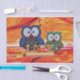 Überraschen Sie Ihren Liebsten mit diesen 2 niedlichen Eule auf einem orangen Hintergrund mit dem Text "Liebe".