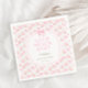 Treten Sie ein in eine Welt des zeitlosen Charmes und zarter Schönheit mit unserer "Liebe Shack Pink Bow Floral Baby Shower Napkins", wo jedes Detail Geschichten von Liebe und Nostalgie. Dieses bezaubernde Design erinnert an die Essenz Vintager Eleganz, mit zarten rosa Bögen und aufwändigen Blumenmustern der Rose. Jedes Element, um die Gäste in eine vergangene Ära der Romantik und Eleganz zu bringen, schafft ein Gefühl der Wärme und Nostalgie, das tief in den Familien ankommt, die die Ankunft ihrer kleinen Prinzessin erwarten. Vor dem Hintergrund von sanften Pastelltönen und Akzenten im Shabby Chic strahlt das Stück zeitlose Eleganz aus und schafft so die perfekte Atmosphäre für eine Babydusche, die voller Freude und Zauber ist. Matching-Elemente verfügbar.