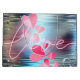 Liebe Shimmer ist ein Design mit dem Wort Liebe über mehrere Herzformen in rosa Farben auf einem silberblauen Hintergrund mit glänzenden Verzierungen. Ein perfektes Geschenk zum Feiern der Liebe am Valentinstag oder an jedem anderen Tag.