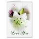 Weiße Lilie mit weißem Herzrahmen. Sie können diese schöne Karte personalisieren.