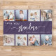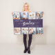 Gib Oma ein Geschenk, das sie schätzen wird. Diese Collage-Decke aus dem Foto enthält acht ihrer liebsten quadratischen Fotos der Enkel, zusammen mit der Meldung "Liebe, Oma." Das Wort "Großmutter" erscheint in elegantem, weißem Schriftzeichen mit Schnörkeln am Anfang und Ende auf einem lila Hintergrund. Fügen Sie die Namen von bis zu vier Enkelkindern hinzu. Ein ideales Geschenk für Ferien, Geburtstage oder Großeltern.