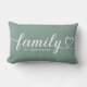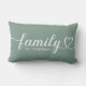 Moderne und stilvolle Kissendesign mit individueller Lumbalform-Kissengestaltung mit einfacher und minimaler "Family" Typografie mit blüh- und Herzdetails. Personalisieren Sie den unten stehenden Großtext mit einem Mono oder Jahr festgelegt. Die Farben Weiß und Graugrün können geändert werden.