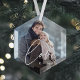 Erschaffen Sie einen süßen Saft Ihrer Hochzeit, Flitterwochen oder besonderen Augenblick mit diesem schönen, maßgeschneiderten Ornament. Fügen Sie ein beliebtes Foto mit "Liebe" überlagert in modernen weißen Schriftzeichen, und Ihre Initialen darunter.