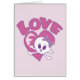 Niedlicher Schädel und Kreuzknochen auf einem rosa Herz mit LIEBE. Das ist ein Mädchenschädel, der für Frauen und Kinder bezaubernd ist.