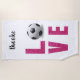 Liebe Fußball Wortdesign mit heißen rosa Imitaten funkeln Buchstaben und das "o" wird durch einen Fußball ersetzt.