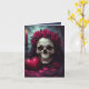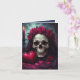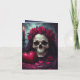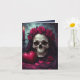 Ein auffallender Schädel sitzt friedlich unter einer Samt-Haube, seine hohlen Augen fangen den warmen, zitternden Schein einer einzelnen Kerze ein. Eine Krone aus tiefroten Rosen krönt den Knochen. Daneben liegt eine herzförmige Schachtel zwischen verstreuten Rosenblättern, eine Harmonie aus Romantik und Verfall. Die Farbpalette ist üppig und dramatisch: blutroter Magenta und Burgunderrot stehen gegen Mitternachtsschwarz und rauchige Teal-Höhepunkte. Das Design wirkt trotz seines makabren Themas lebendig. Kerzenlicht wirft lange, tanzende Schatten und verwandelt Verfall in Eleganz.