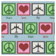 Friedenszeichen, Herz und Flugzeuge auf einem hellblauen Hintergrund für den Himmel auf dem Stoff. Großartiges Gewebe, um Geschenke für einen Piloten, Flugbegleiter oder jemanden, der nur gerne Flugzeuge.