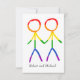 Diese RSVP-Karte bietet ein schönes und einfaches Design, das Sie bei Ihren Hochzeitsaufenthalten berücksichtigen können. Die Grafik zeigt zwei Männer, in Form von eleganten Strichmännchen, die Hände halten. Die Figuren sind in einem wunderschönen Regenbogen gefärbt und symbolisieren Liebe und Diversity. Diese Karte ist ein wunderbarer Weg, um eine kohärente und sinnvolle Touch in Ihrem Schreibtisch zu bringen und den Gästen eine klare und elegante Art zu antworten. j