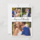 Elegante, Minimalistische Moderne "Liebe und danke" Script 3 Foto Collage Wedding Dankeschön Karte. Stilvolle Hochzeit dank Karte Vorlage mit drei Foto auf der Vorderseite und ein Foto auf der Rückseite. Mit dem Text "Liebe und Dank" in einer Wirblen Hand schreiben Typografie oder Kalligrafie Swash Schwanz Schriftart Skript in schwarz auf weißem Hintergrund. Personalisieren Sie den individuelle Name und danken Sie Ihnen Nachricht. Wenn Sie lieber Ihre Notiz handschreiben, löschen Sie einfach den Beispieltext, um mehr Platz zu machen. Wenn Sie Hilfe oder Match-Artikel benötigen, kontaktieren Sie mich bitte!
