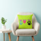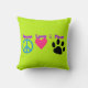 Niedliche Grafik in bunten Neonfarben. 3 Symbole - ein Friedenszeichen, ein Herz und eine Pfote, mit den Worten Frieden, Liebe und Pfoten. Für ruhige Haustierbesitzer.