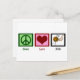 Ich gehe nirgendwo hin ohne meine Nadeln und Garne zum Stricken. Eine niedliche Strickpostkarte, die Peace Liebe Strick unter einem hübschen Design liest. Eine tolle Karte für einen Strickclub oder eine Gruppe.