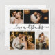 Elegantes "Liebe und Dank" Script 4 Foto Collage Wedding Dankeschön Karte. Stilvolle, moderne Hochzeitskartentafel mit vier (4) Fotos vorne und einem Foto auf der Rückseite. Mit dem Text "Liebe und Dank" in einer Wirblen Hand Schrift Schriftzug Swash-Schwanz Schriftart in schwarz auf weißem Hintergrund. Personalisieren Sie den individuelle Name und danken Sie Ihnen Nachricht. Wenn Sie lieber Ihre Notiz handschreiben, löschen Sie einfach den Beispieltext, um mehr Platz zu machen. Wenn Sie Hilfe oder Matching Artikel benötigen, wenden Sie sich bitte an Designer!