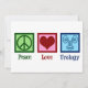 Frieden Liebe Urologie. Eine coole Urologistenkarte für einen Urologen-Arzt oder eine Krankenschwester mit einem Friedenszeichen, Herz und Bild einer Blase. Tolle Urologie Departement Urlaubskarten.
