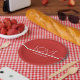 Papier Teller mit Rot und Weiß mit einem minimalen Design für den Valentinstag. Der gesamte Text kann individuell angepasst werden.