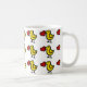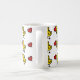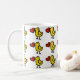 Gelbe Liebesvögel, die ein Herz im Mund halten, machen eine lustige Tasse für den Valentinstag oder den Alltag.