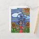 Bild von meinem ursprünglichen Farbstift gezeichnet. Dieses volkstümliche Gemälde hat neben zwei großen gelben Sonnenblumen eine Frau in roter stehend gekleidet. Die Sonne lacht über. Zwei surreale Wolken schweben über ihren blühenden roten Herzen auf dem Boden. Sehen Sie in meinem Shop Art by MAR nach, um Produkte mit diesem Design zu kombinieren.