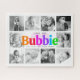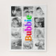 "Liebe du Bubbie." Sie liebt jede Minute mit ihren Enkelkindern. Ein spielerisches, skurriles, stylisches visuelle von vielfarbiger Regenbogenfett, feiner Typografie und handgeschriebener schwarzer Typografie überlagert ein weiches, hellrosa Herz und einen weißen Hintergrund. Fügen Sie 10 hochgeschätzte Fotos Ihrer Wahl hinzu und passen Sie die Namen und die Botschaft an, für das perfekte moderne, stilvolle, personalisierte Foto Collage Puzzle wird sie immer schätze. Wählen Sie ein Schwarz-Weiß-Foto für ein elegantes Aussehen. (ZUSÄTZLICHE FOTO-TIPP: Präzidieren Sie Ihre Fotos in ähnliche Formen und/oder haben Sie die Motive in der Mitte vor dem Hochladen.) Erhältlich in fünf verschiedenen Größen. Ein großes jüdisches Geschenk für Ihre Blase am Muttertag, Hanukkah, ihren Geburtstag oder andere Feiertage. Ersetzen Sie einfach die 10 Fotos durch eigene, fügen Sie Namen, Nachrichten und/oder Datums hinzu, und Sie können dieses Puzzle für das Zusammentragen des Fotos mit dem Zusammenspiel von Keepake leicht personalisieren. Bitte schicken Sie mir eine Nachricht mit Fragen oder Wünschen.