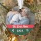 Dieses trendige und stilvolle Weihnachtsschmuck mit zwei Fotos von Ihnen und Ihrem Großvater, mit modernen Farbblöcken in festlichem Rot und Grün mit handgeschriebener Schrift Typografie und niedlichen Hörnchen. Im Ornament steht: "Wir Liebe dir Papa."