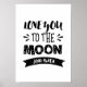Liebe zum Mond und Backposter druckt moderne handgeschriebene Typografie. Ideal für ein Kinderzimmer und Anzüge in einem monochromen Stil.